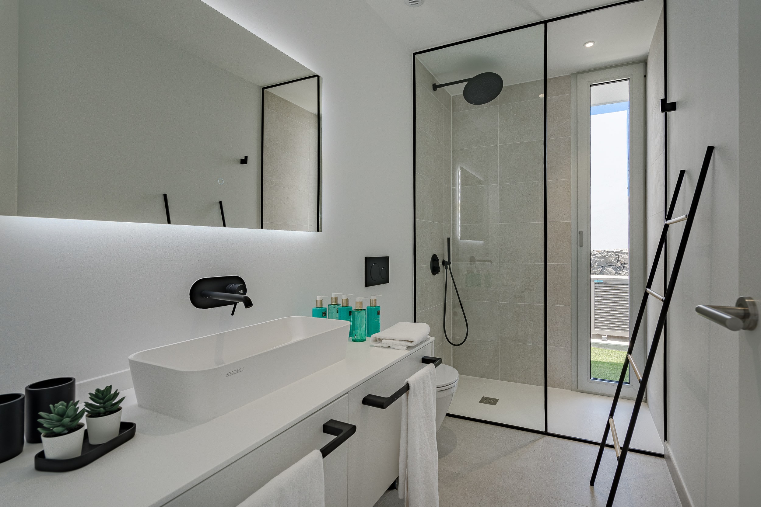 From its private terrace with stunning views of the Atlantic to its outdoor heated pool, every corner of DELUXE 3 Villa is designed to offer the utmost comfort. The villa features three spacious bedrooms, designed with a modern and sophisticated aesthetic, complemented by three full bathrooms, each equipped with all the amenities. Every detail has been carefully selected to ensure an exceptional stay, from the soft textiles to the high-end fittings throughout the property.